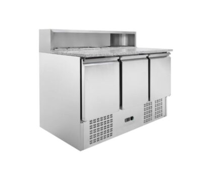 La Mesa S902PZ es la solución robusta y eficiente para conservar alimentos y trabajar en cocinas profesionales con espacio limitado. Encimera de granito resistente e higiénica, estructura en acero inoxidable y refrigeración fiable para el ritmo diario de pizzerías y restaurantes.