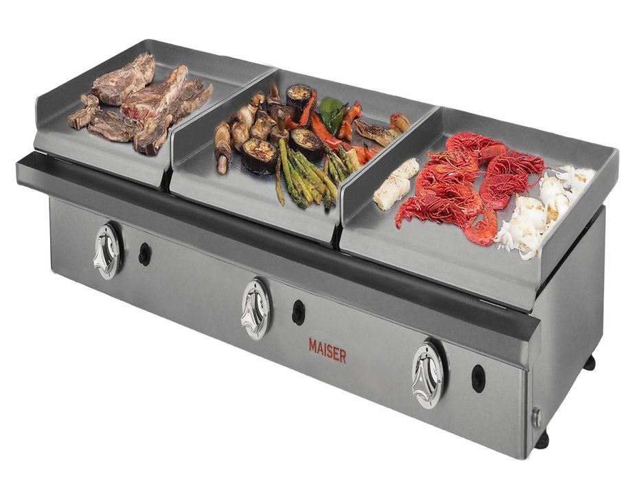 Plancha Industrial a Gas 3X40 cm Acero Rectificado 8 mm Maiser PG8R40X3