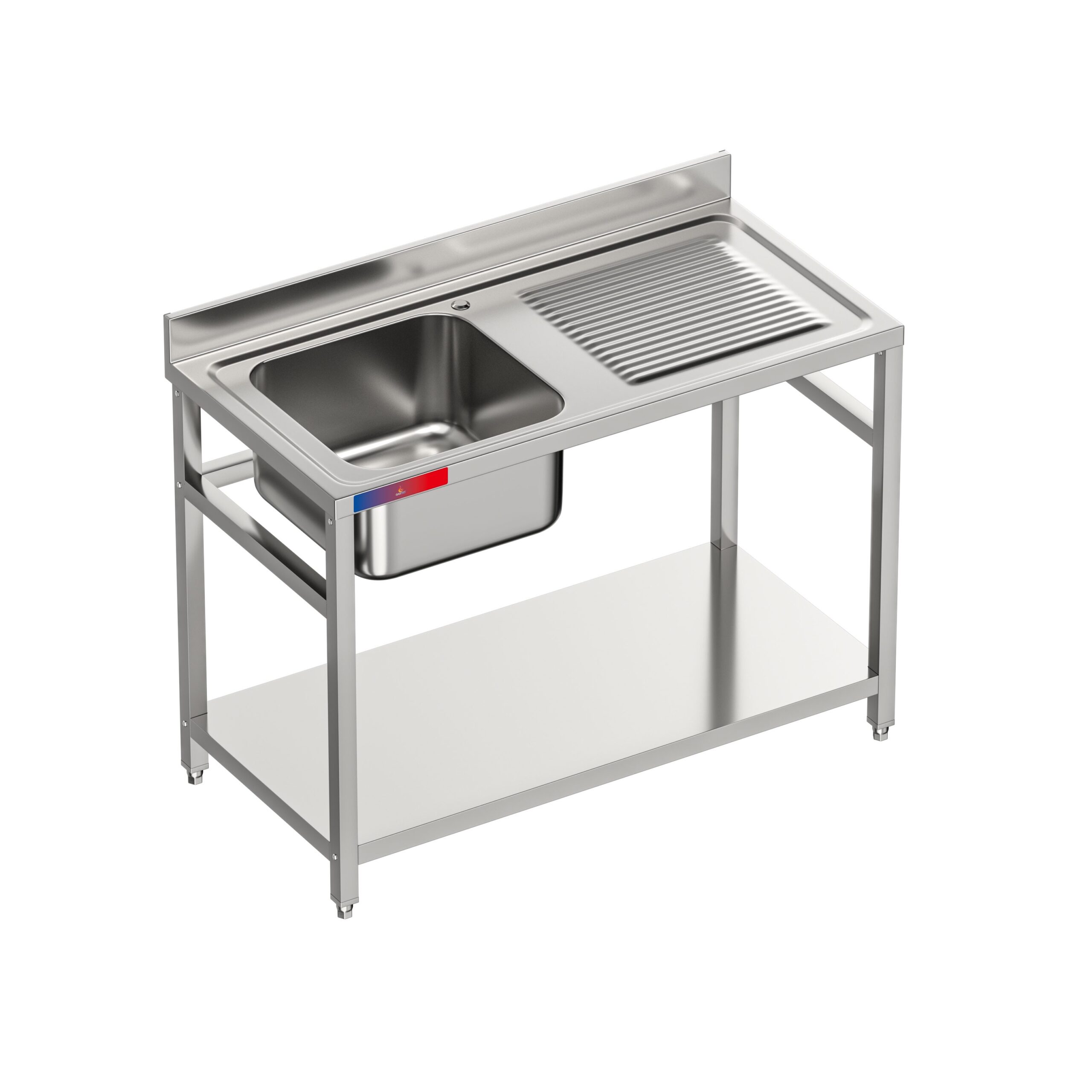 - 1200x600mm de superficie total — espacio amplio de trabajo para cocinas con volumen alto de lavado
