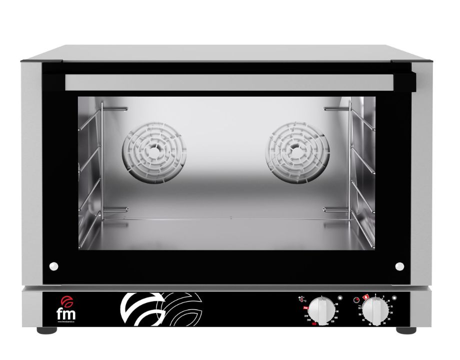 Horno de convección FM RXP604 con 4 bandejas 600×340 (GN 1/1). Compacto en fondo, vapor regulable y cocción uniforme. Para obradores con espacio limitado. Pide presupuesto.