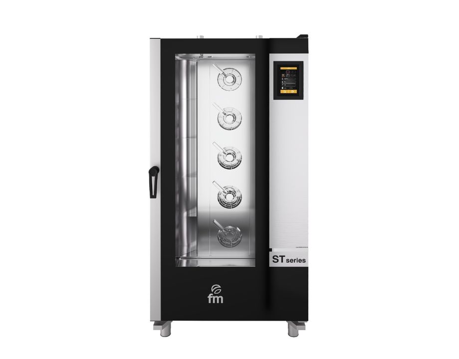 Horno FM STB616 eléctrico con panel digital V7 y 16 bandejas. Programa tus recetas, controla al grado y repite resultados perfectos hornada tras hornada. Consúltanos.