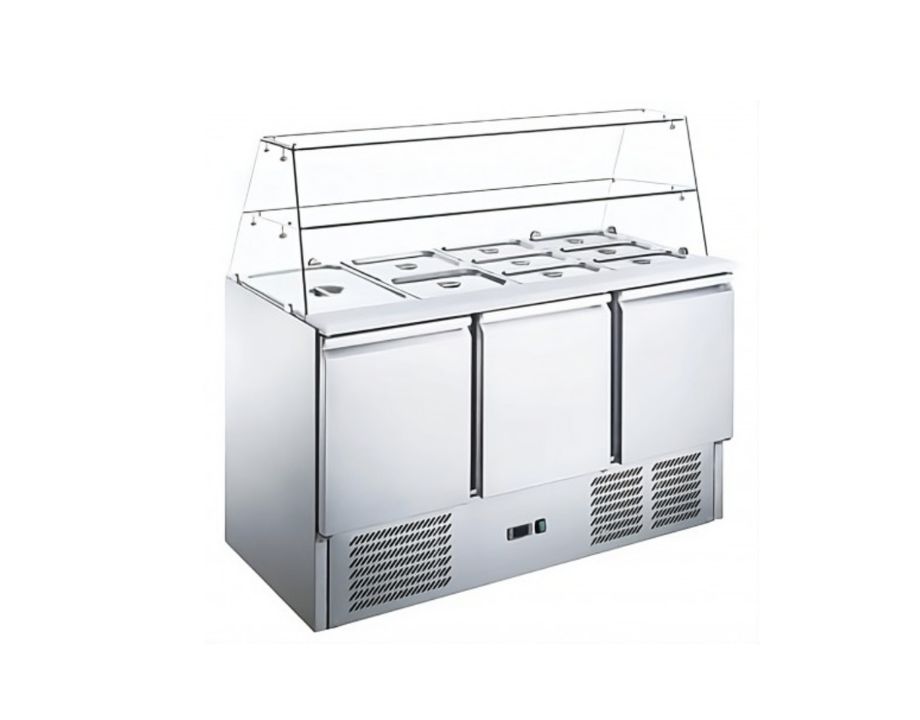 Mesa de Preparación Refrigerada Cristal Curvo 3 Puertas — Todo a la Vista, Todo a Mano