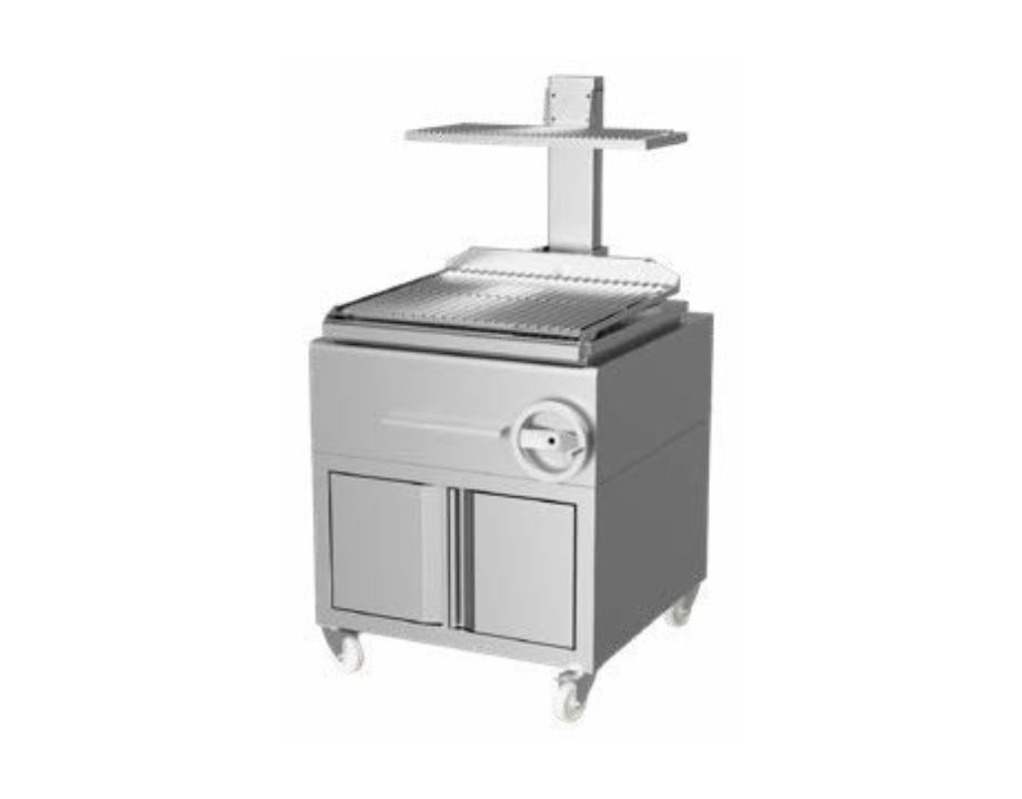 Parrilla de carbón profesional Adler con mueble inferior. 1 cuerpo de parrilla. Para asadores y restaurantes premium que buscan la experiencia auténtica del carbón con presentación a la vista.