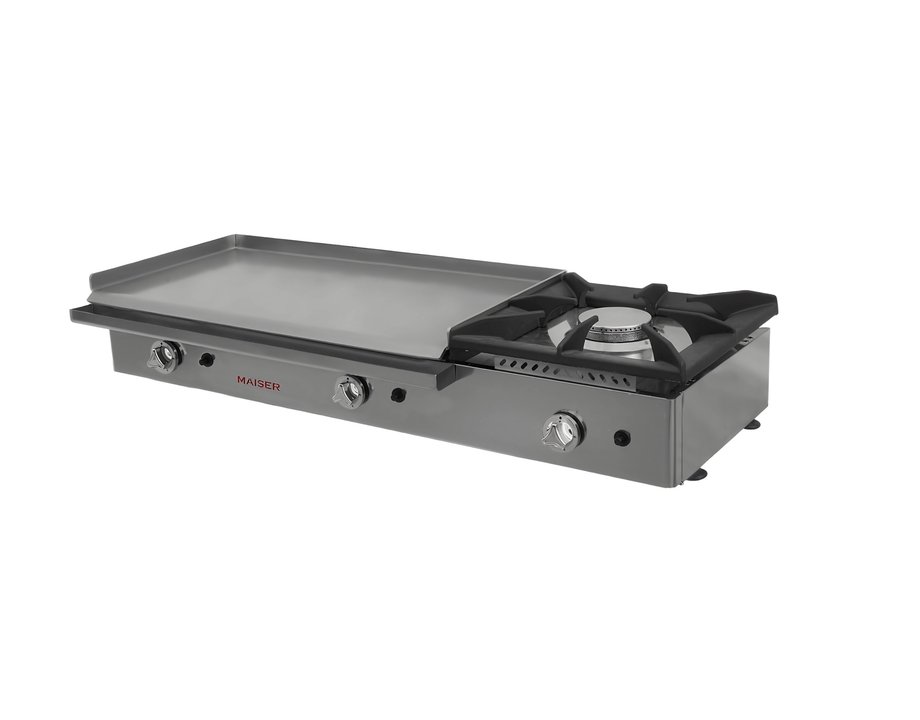 Plancha a Gas 80 cm Acero Rectificado 8 mm con Fogón Gran Formato Maiser PG8R80+40F