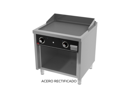 Plancha de gas cromo duro 60+60 cm (120 cm total), placa 10 mm (50 micras), 3 válvulas termostáticas ECOGAS, 12,1 kW y 4 quemadores italianos. Tres zonas de temperatura en metro y veinte de superficie profesional. Pide presupuesto.
