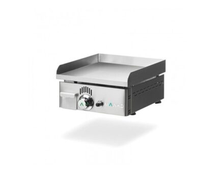 Dimensiones: 1210 x 472 x 229 mm | Potencia: 12,1 kW | Alimentación: Gas propano-butano (GN incluido) | Material: Cromo duro 10 mm (50 micras) | Quemadores: 4 | Grifos: 3 termostáticos