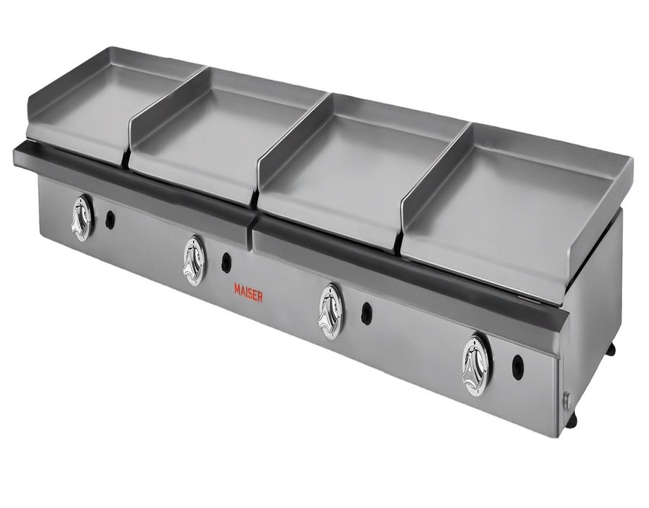 En cocinas de alta producción, necesitas equipamiento que aguante el ritmo sin fallar. Esta plancha gas cuádruple Maiser con acero rectificado de 8 mm te garantiza temperatura uniforme, resistencia al uso intensivo y facilidad de limpieza que marca la diferencia en tu servicio diario.